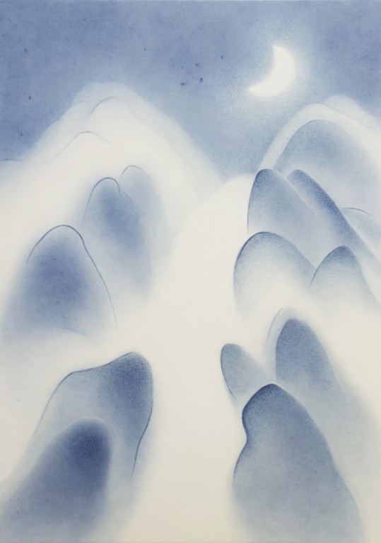 3 MYTHOS 22-A1-2 Tukuyomi Above Us 4.1x59.4cm Mud pigment, resin glue on Japanese washi paper mounted on wooden panel