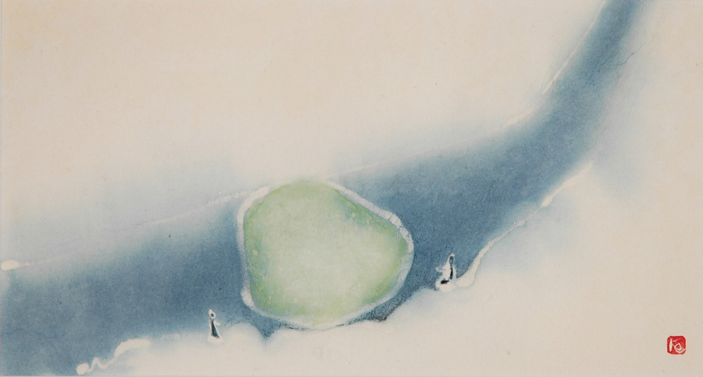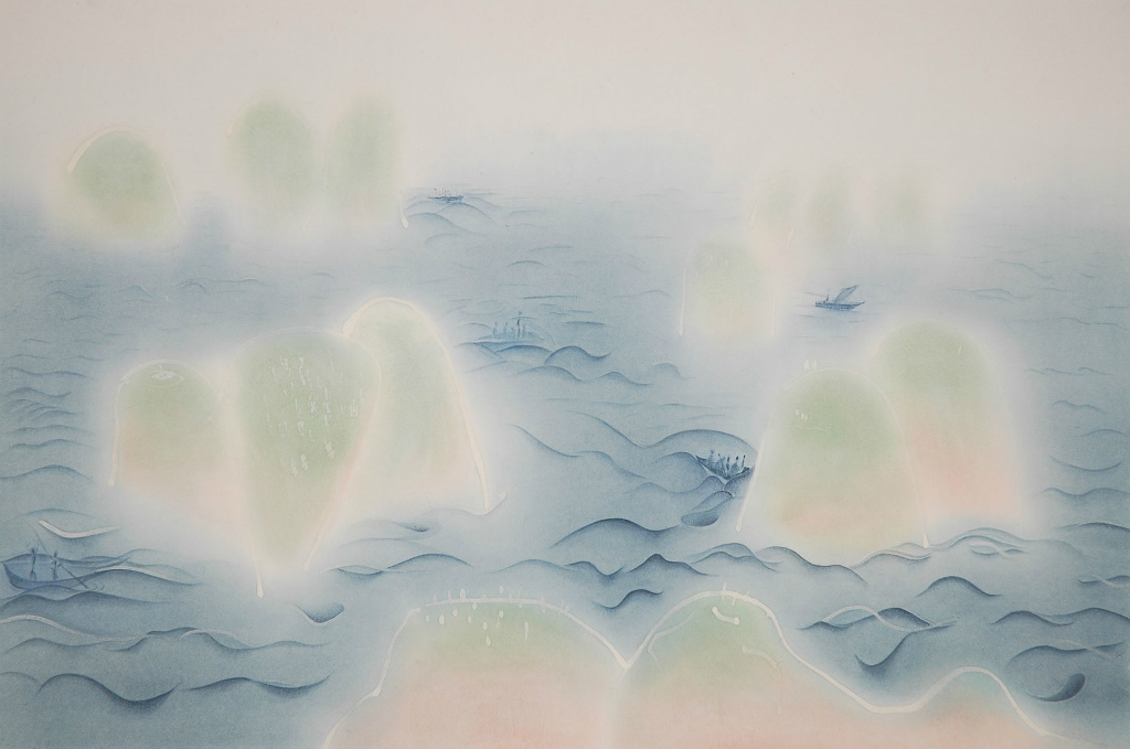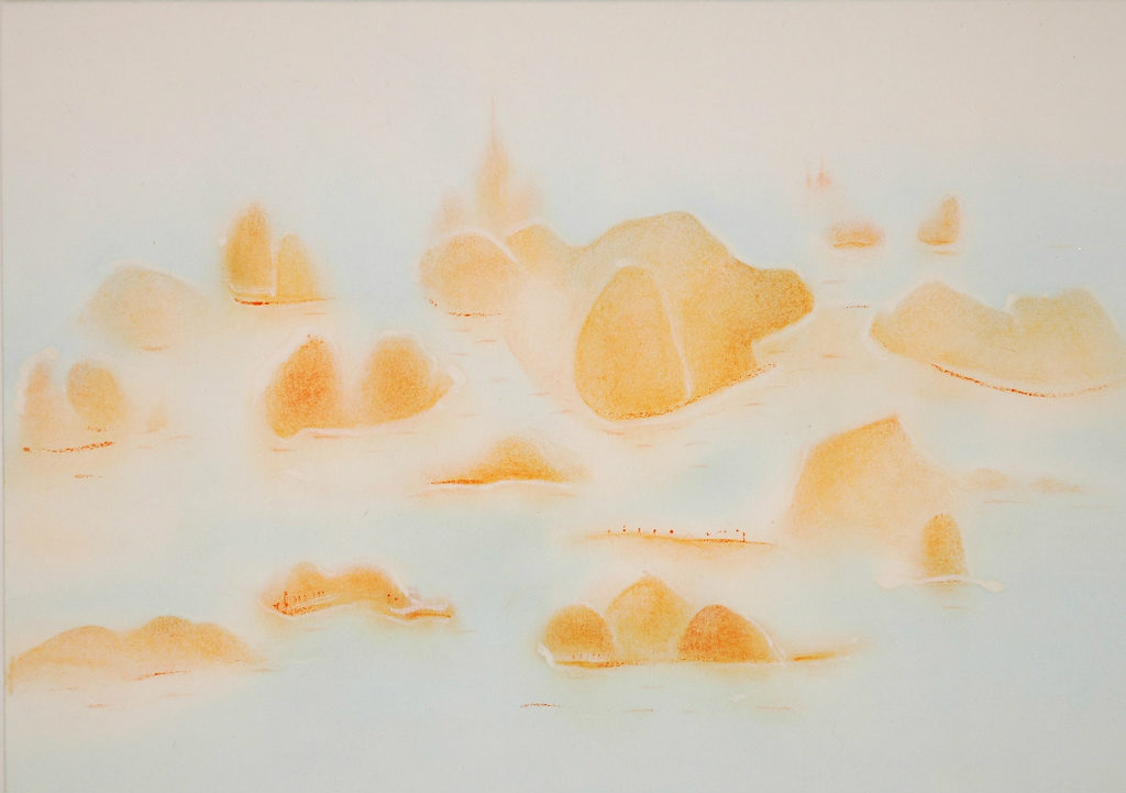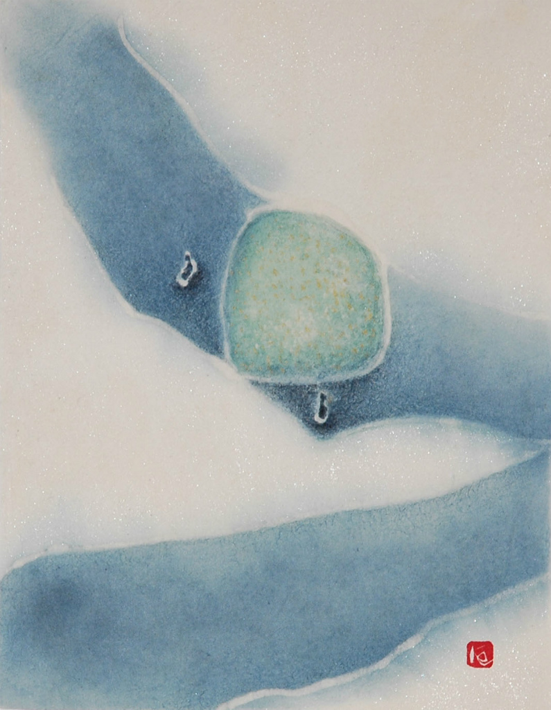 MYTHOS 22-AI-1 Onogoro Island 84.1x59.4cm Mud pigment, resin glue on Japanese washi paper mounted on wooden panel