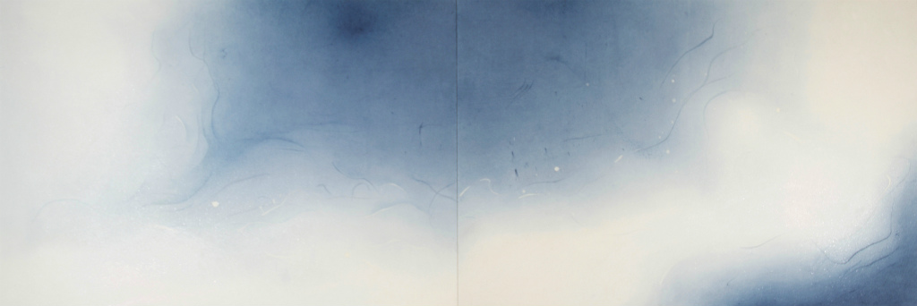 MYTHOS 23-H2-4 Kami Above us 25×125cm Mud pigment, resin glue on Japanese washi paper mounted on wooden panel
