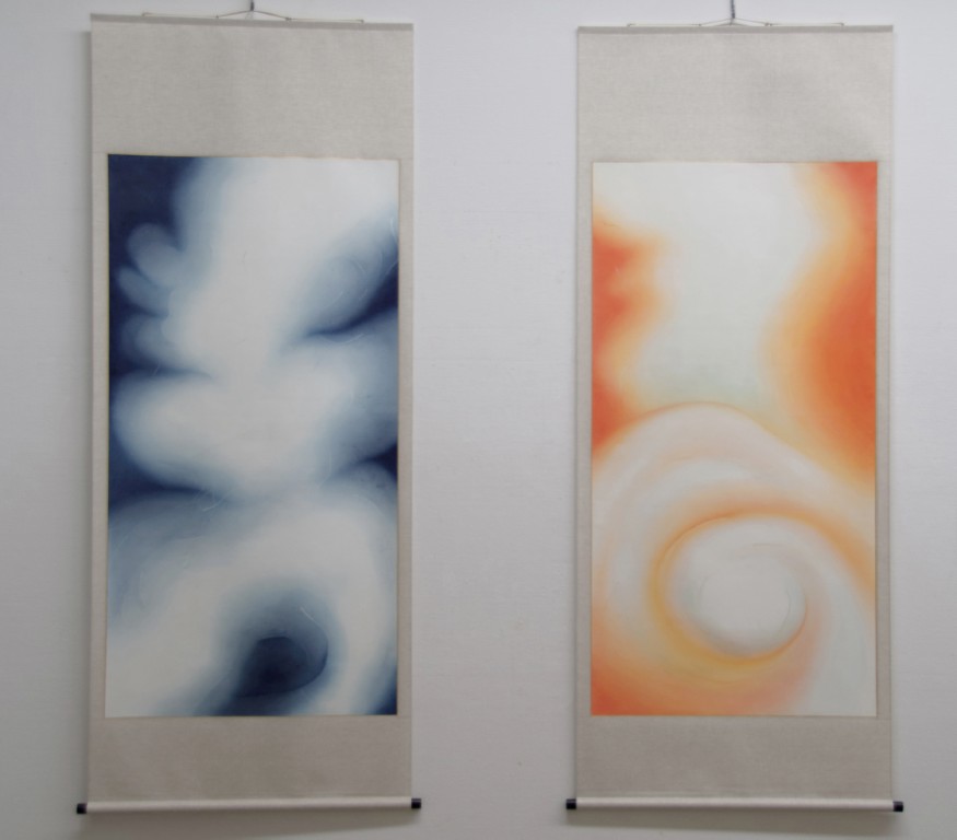 MYTHOS 23-HS-Ⅰ,Ⅱ Izanagi & Izanami 145x75(195x85) cmx2pieces Hanging scroll Mud pigment, resin glue on Japanese washi paper